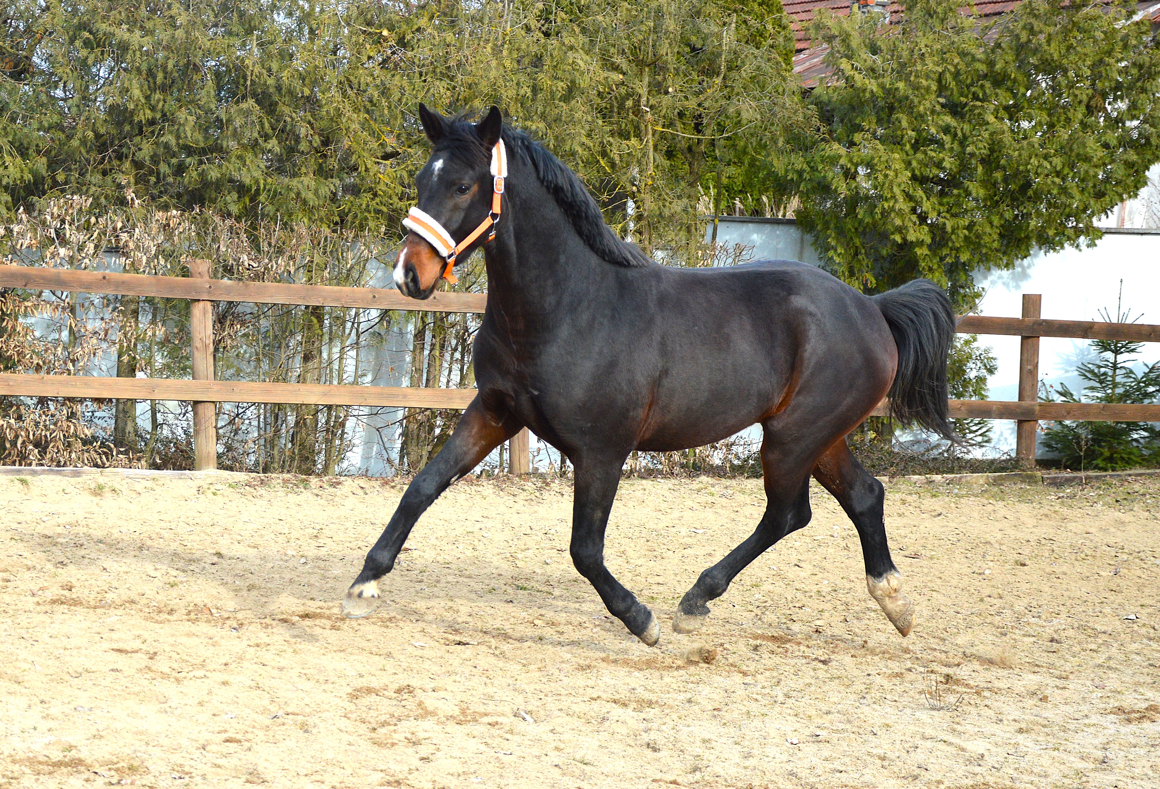 Valach plemene Oldenburg, hnědák, narozen 11.3.2023. Otec Fidertanz po Fidermark x Ravallo. Matka St. Pr. Dolce Vita po Desperados x Donnerhall.